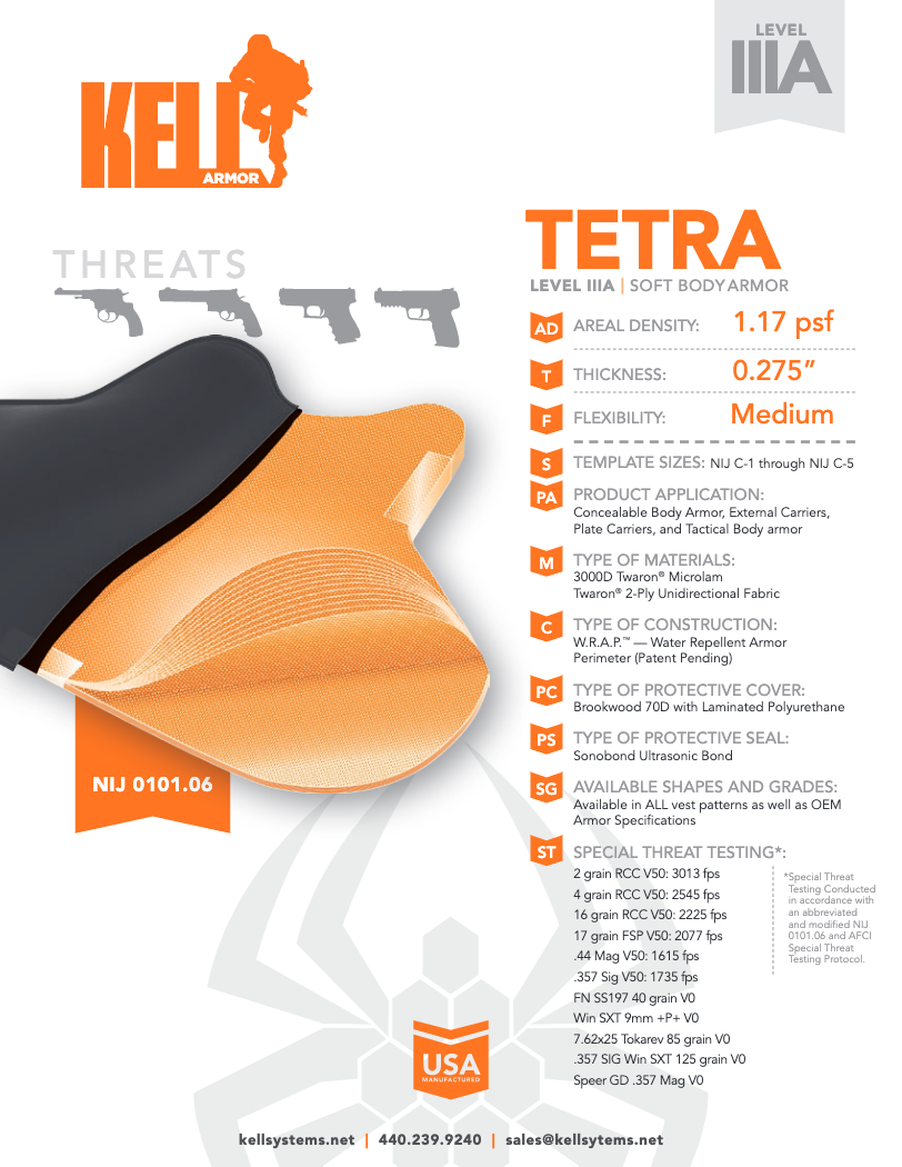 Home / Armor / Tetra – Level IIIA ballistics – Male Tetra – Level IIIA ballistics – Male 1.17 psf 0.275″ thin Level IIIA NIJ .06 certified armor package Download Spec Sheet Add to quote Category: Armor Tags: armor, body armor, Concealable, KELL, vest Product ID: 4728 Description Description Tetra Armor Level IIIA – Male Related products Lightweight VALOR helmet Tetra – Level II ballistics – Male Stryker ICW Plate, Level III ICW Atoma – Level IIIA BALLISTICS – MALE